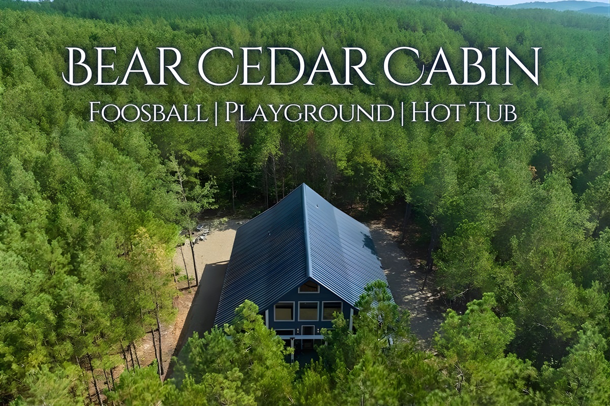 2 Bedrooms • 3 Bathrooms 3 Baths • Sleeps 4-8Hidden among the tall pines of Broken Bow, Bear Cedar Cabin is a place where fresh air, quiet mornings, and time together take center stage. Step inside and you’re welcomed by vaulted ceilings, warm wood tones, and an open layout that makes it easy for everyone to gather in one comfortable space. The main living area features a cozy fireplace, smart TV, and plenty of seating for movie nights or relaxed conversations after a day outdoors. Just steps away, the fully equipped kitchen has everything you need—from cookware and utensils to both a Keurig and drip coffee maker—while the large dining table is ready for shared meals, board games, and memory-making moments.