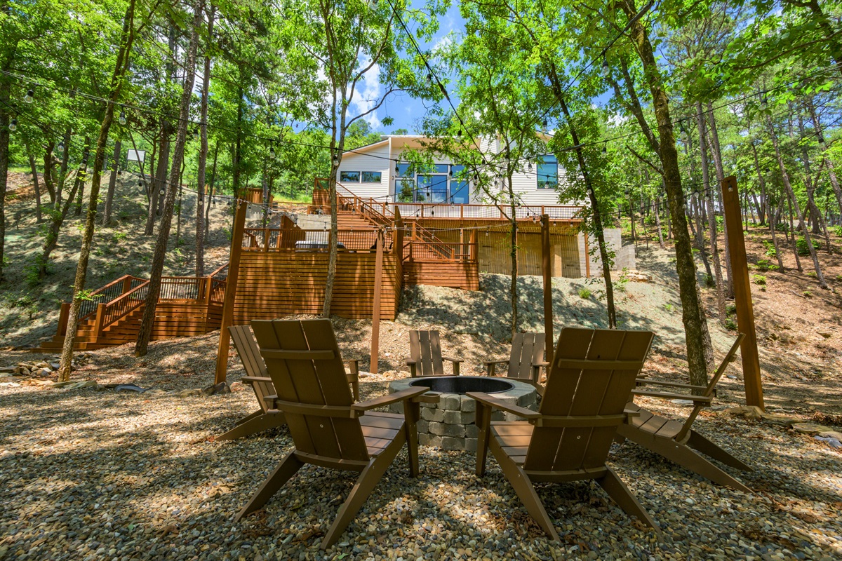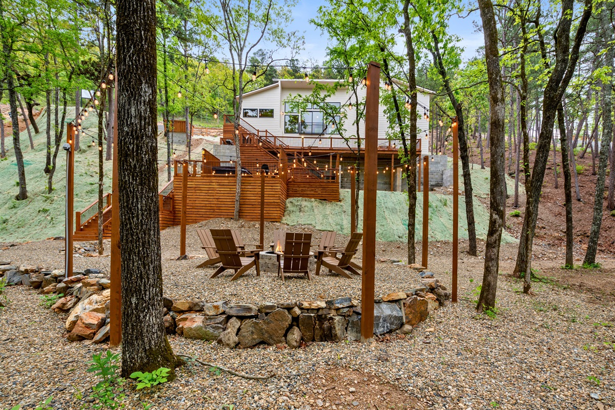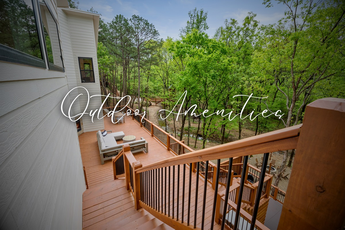 Heavenly Brook offers a spacious and elevated retreat with 4 bedrooms and 4.5 bathrooms, designed for both relaxation and connection. Recently named "New Cabin of the Month" by Broken Bow Inv., this cabin pairs modern comfort with natural beauty, featuring large windows that frame the surrounding forest and fill the space with natural light. A running creek and charming waterfall add a peaceful, almost storybook-like setting right outside your door. Spend your days exploring the property, soaking in the hot tub perched above the trees, or gathering around the fire pit as the sun sets. Inside, the open living area, fully equipped kitchen, and inviting bedrooms make it easy to settle in and feel at home.