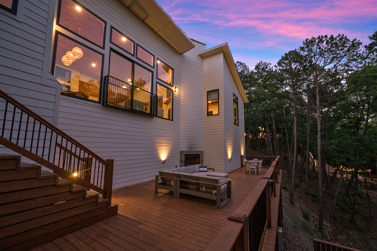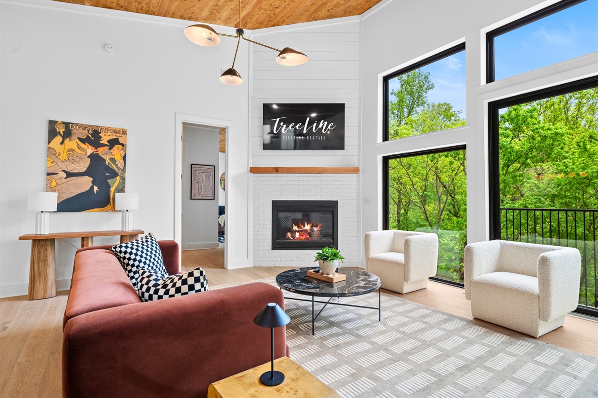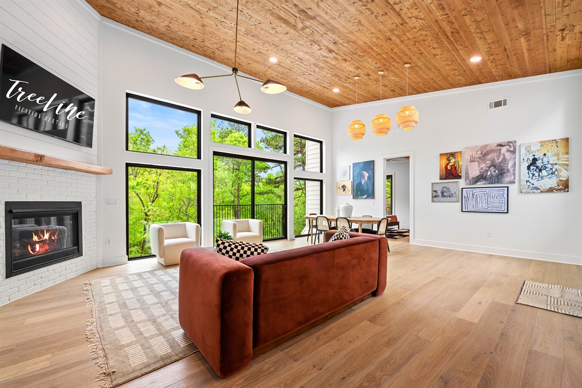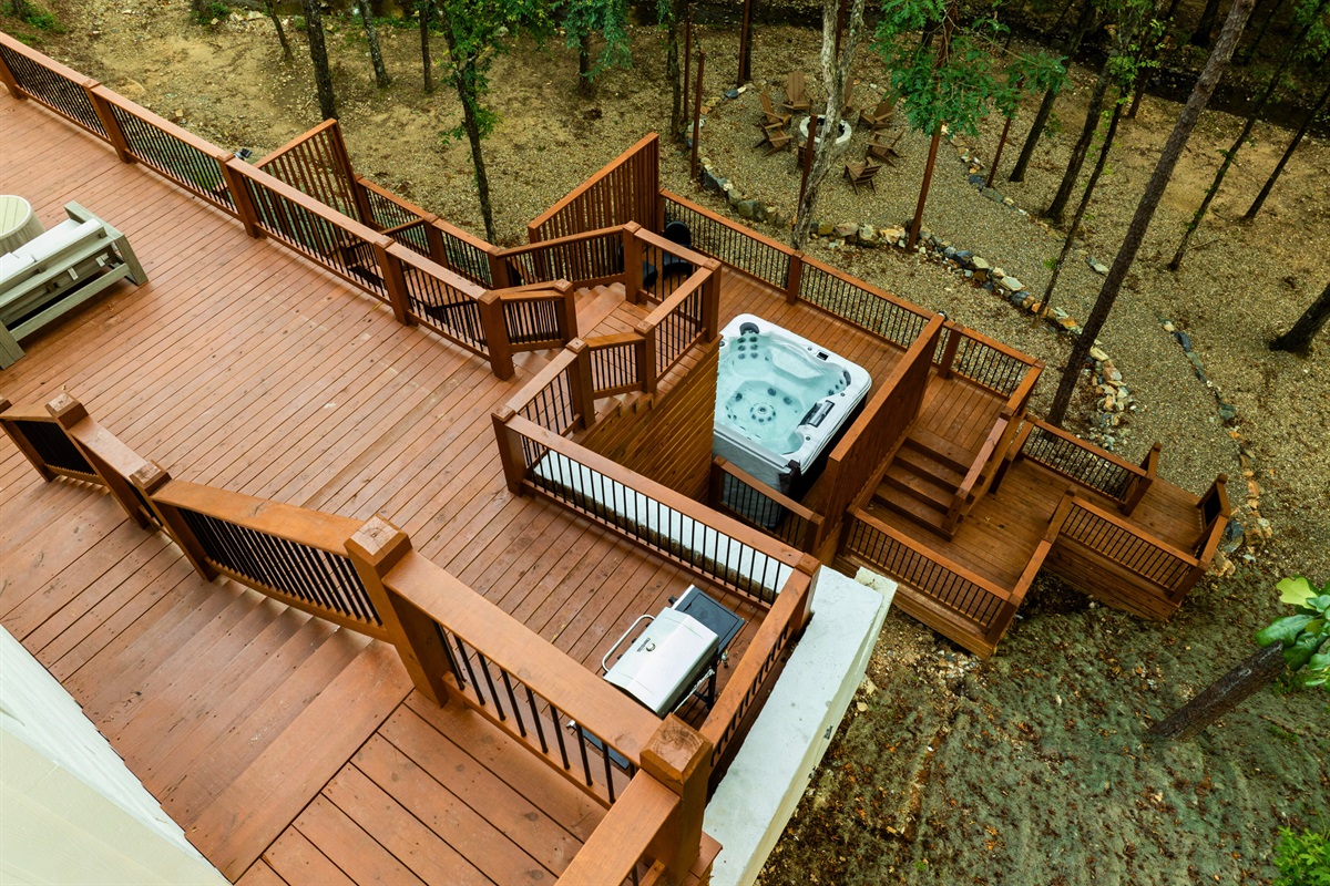 Heavenly Brook offers a spacious and elevated retreat with 4 bedrooms and 4.5 bathrooms, designed for both relaxation and connection. Recently named "New Cabin of the Month" by Broken Bow Inv., this cabin pairs modern comfort with natural beauty, featuring large windows that frame the surrounding forest and fill the space with natural light. A running creek and charming waterfall add a peaceful, almost storybook-like setting right outside your door. Spend your days exploring the property, soaking in the hot tub perched above the trees, or gathering around the fire pit as the sun sets. Inside, the open living area, fully equipped kitchen, and inviting bedrooms make it easy to settle in and feel at home.