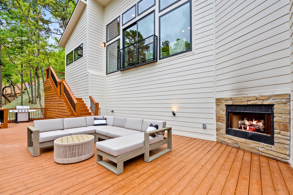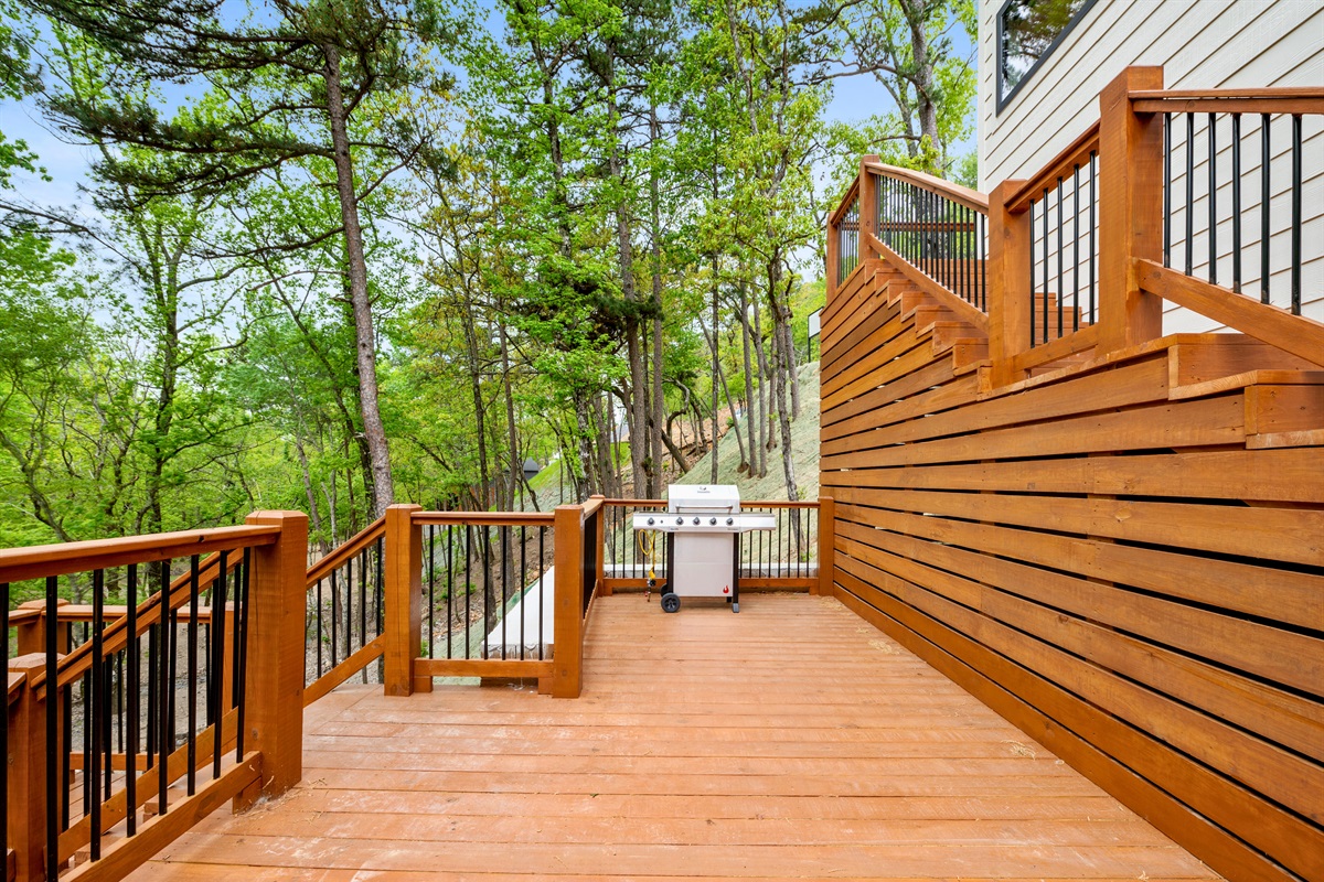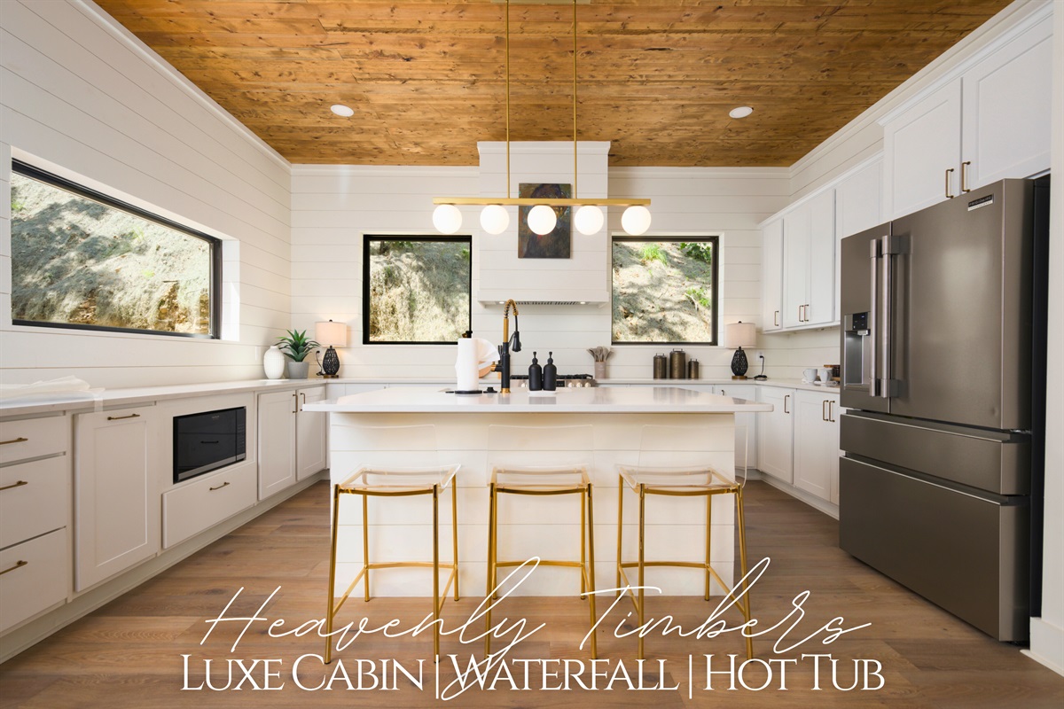 Just a short distance away, Heavenly Timbers offers a cozy and welcoming atmosphere with 3 bedrooms and 2 bathrooms, ideal for smaller groups or those wanting a slightly more tucked-away feel. The open living space and fully stocked kitchen make it easy to gather, while the outdoor deck invites you to slow down and enjoy the surroundings. You’ll find another beautiful creek and waterfall here as well, giving guests even more opportunities to explore and unwind in nature. Whether you’re grilling on the deck, relaxing in the hot tub, or roasting s’mores by the fire pit, this cabin strikes a perfect balance between comfort and the outdoors.