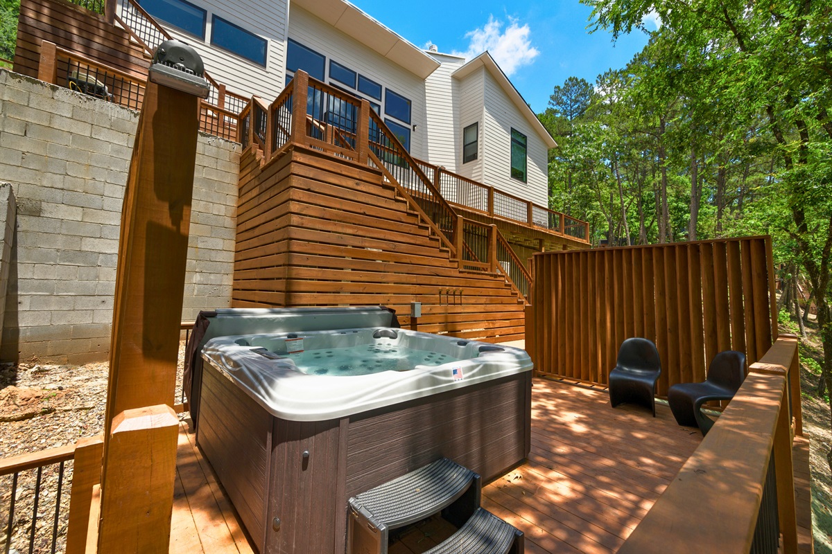 ✔ Covered back patio with a gas grill, hot tub, and plenty of seating
