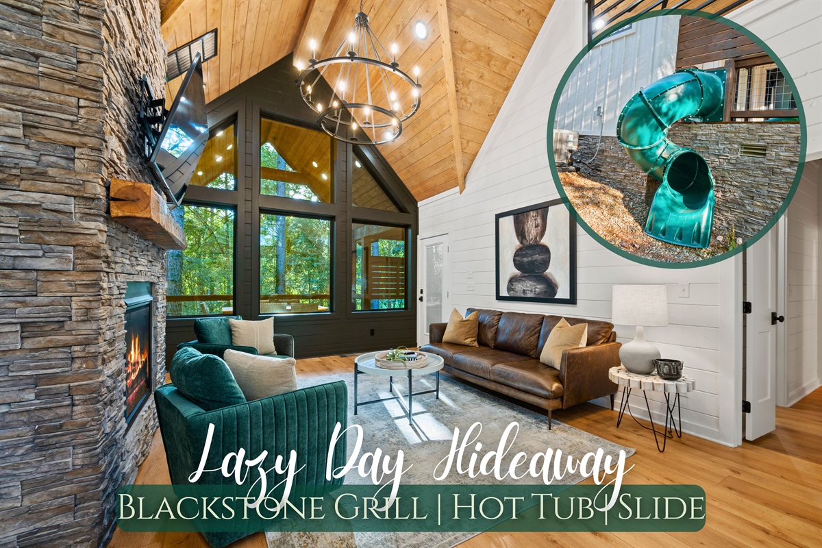 Lazy Day Hideaway Modern Cabin Retreat w/Fire Pit, Slide & Hot Tub